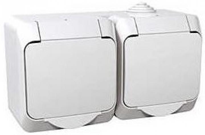 Dvojnásobná nástěnná zásuvka, 2x(P+PE) s dětskou pojistkou(clonkami), bílá.