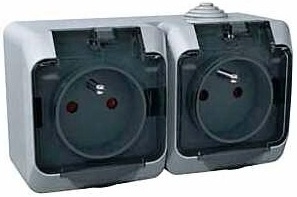 Zásuvka dvojnásobná 230V 16A 2P+PE, šedá s čirým krytem