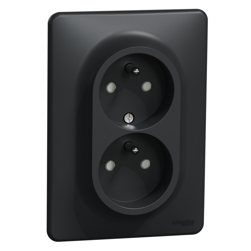 Zásuvka dvojnásobná 2P+PE se zemnícím kolíkem, v barvě antracit. 16 A - 250 V ∿
