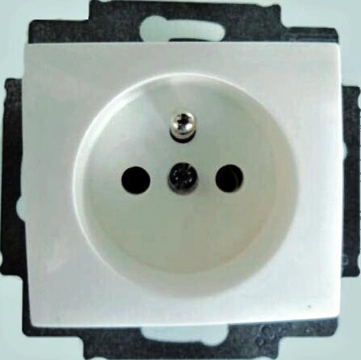 Zásuvka 2P + T s dětskou ochranou. Dodáváno bez rámečku.