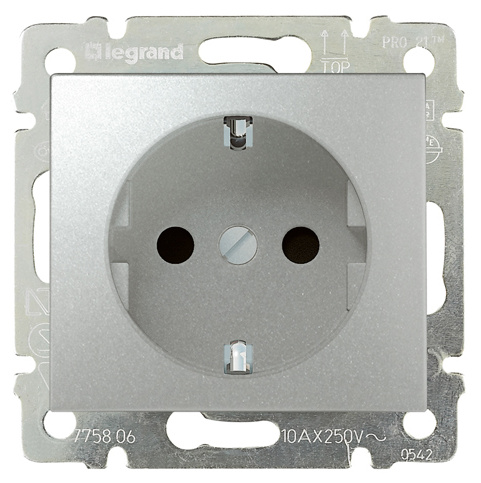 Zásuvka jednonásobná 2P+T Schuko Legrand Valena 770120, hliník (min.obj.10ks)