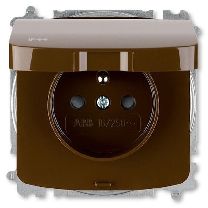 Zásuvka jednonásobná IP44 s clonkami s víčkem ABB Tango 6619A-A06997 H hnědá