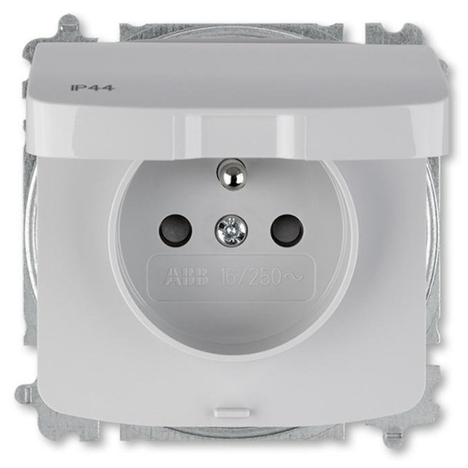 Zásuvka jednonásobná IP44 s clonkami s víčkem ABB Tango 6619A-A06997 S šedá