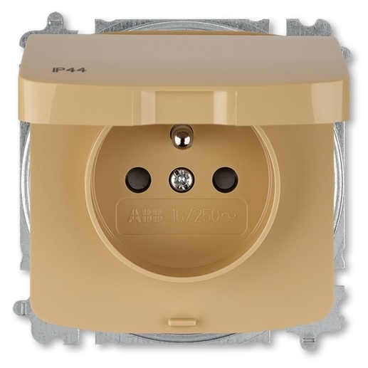 Zásuvka jednonásobná IP44, s ochranným kolíkem, s clonkami, s víčkem, bezšroubové svorky ABB Tango 5519A-A02997 D béžová (nahrazeno typem 6619)