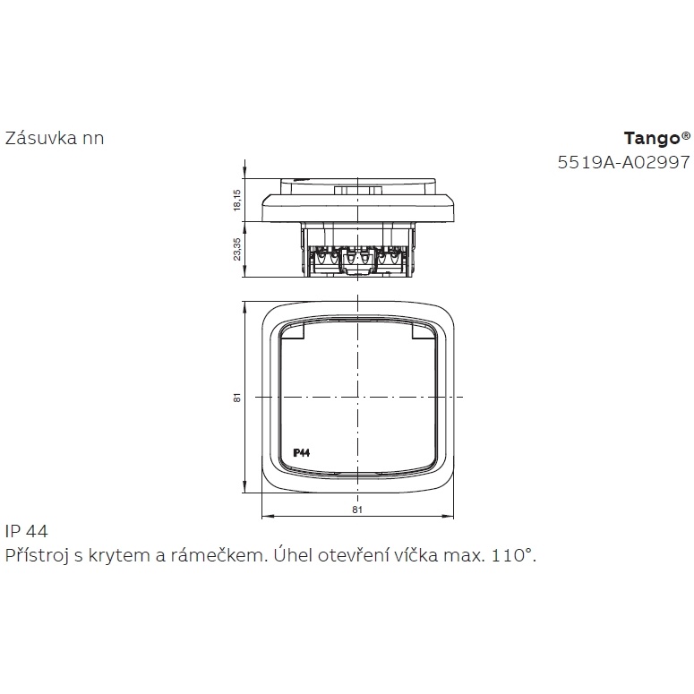 - Zásuvka jednonásobná Tango IP 44, s víčkem a clonkami, bezšroubové svorky