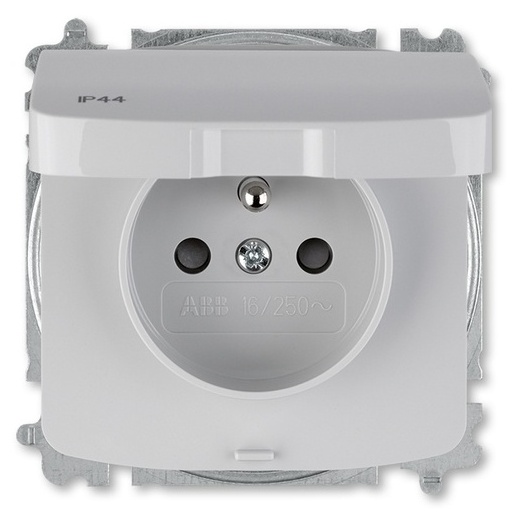 Zásuvka jednonásobná IP44, s ochranným kolíkem, s clonkami, s víčkem, bezšroubové svorky ABB Tango 5519A-A02997 S šedá (nahrazeno typem 6619)