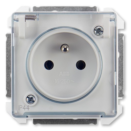 Zásuvka jednonásobná IP44 s víčkem ABB Swing 5518G-A02989 B1 bílá (průhledné víčko)