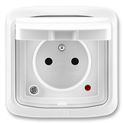 Zásuvka jednonásobná IP 44, s ochranným kolíkem, s víčkem, s clonkami, s ochranou před přepětím