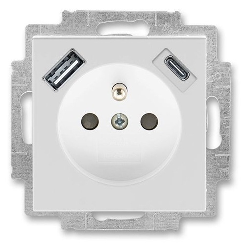 Zásuvka jednonásobná s clonkami s USB nabíjením (USB-A + USB-C) ABB Levit 5569H-A32357 16 šedá/bílá