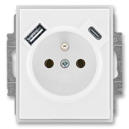 Zásuvka jednonásobná s clonkami s USB nabíjením (USB-A + USB-C) ABB Time Element 5569E-A32357 01 bílá/ledová bílá