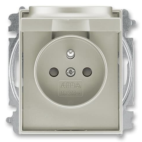 Zásuvka jednonásobná s clonkami s víčkem ABB Time 6619E-A06397 32 starostříbrná