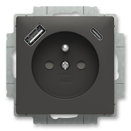 Zásuvka jednonásobná s kolíkem, s clonkami, USB-A USB-C ABB Zoni 5569T-A32357 237 matná černá