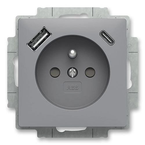 Zásuvka jednonásobná s kolíkem, s clonkami, USB-A USB-C ABB Zoni 5569T-A32357 241 šedá