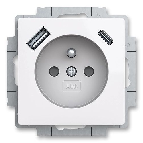 Zásuvka jednonásobná s kolíkem, s clonkami, USB-A USB-C ABB Zoni 5569T-A32357 500 bílá
