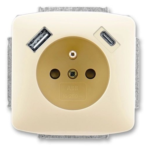 Zásuvka jednonásobná s ochranným kolíkem, s clonkami, s USB nabíjením (USB-A + USB-C) ABB Tango 5569A-A32357 C slonová kost