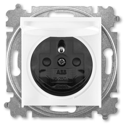 Zásuvka jednonásobná s ochranným kolíkem s clonkami s víčkem ABB Levit 6619H-A06397 62 bílá/kouřová černá