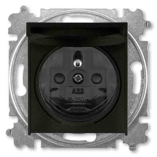 Zásuvka jednonásobná s ochranným kolíkem s clonkami s víčkem ABB Levit M 6619H-A06397 63 onyx/kouřová černá