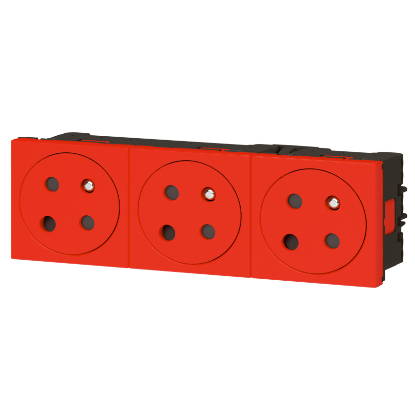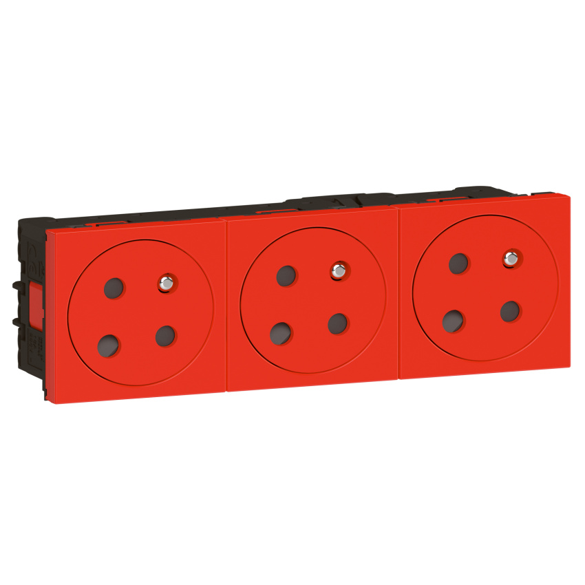 Zásuvka Legrand Mosaic 077153L 3X2P+T zarovnaná červená