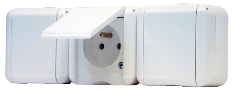 Trojitá zásuvka na povrch s plným víčkem. Šroubové svorky.