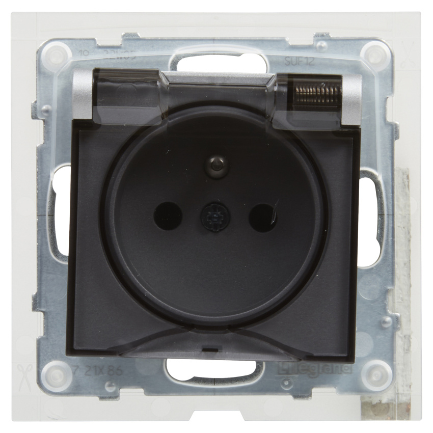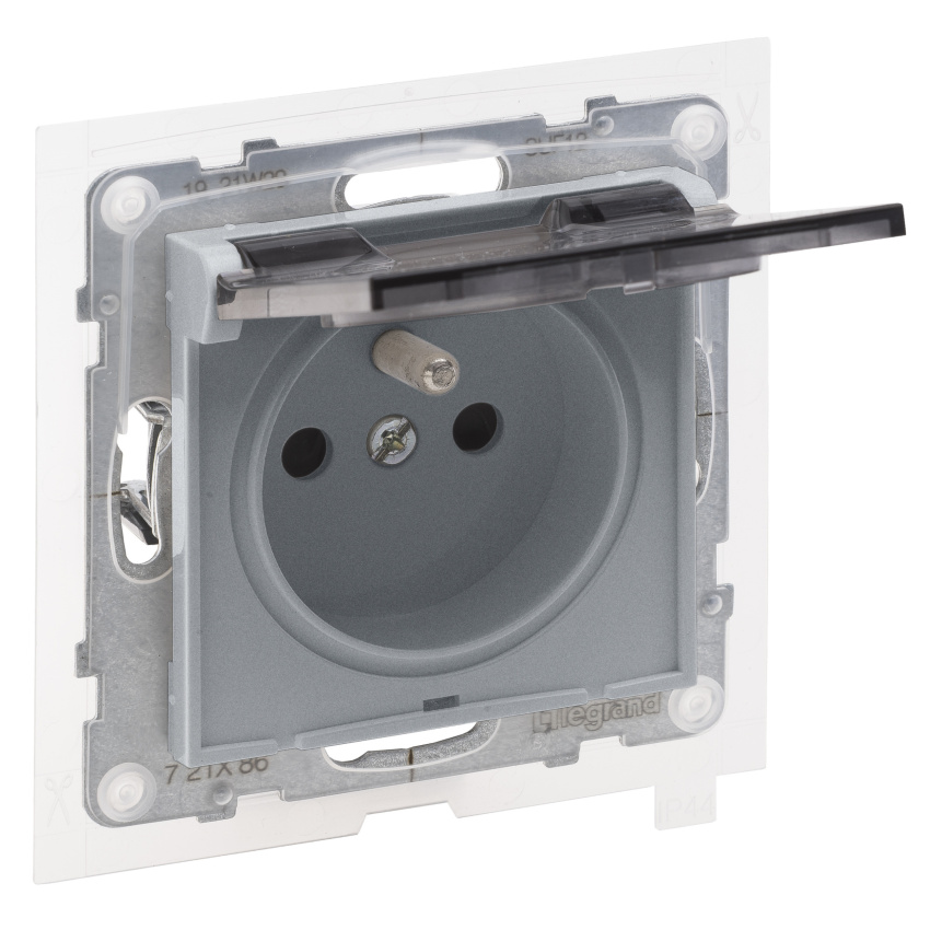 Zásuvka s clonkami v krytí IP44 Legrand SUNO 721386 hliník