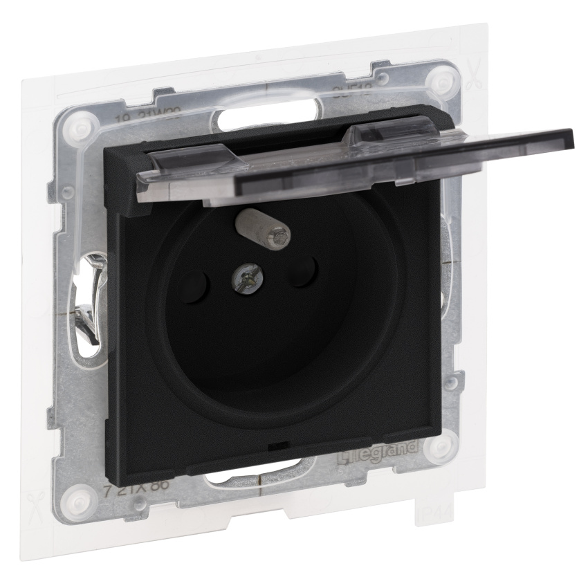 Zásuvka s clonkami v krytí IP44 Legrand SUNO 721486 černá