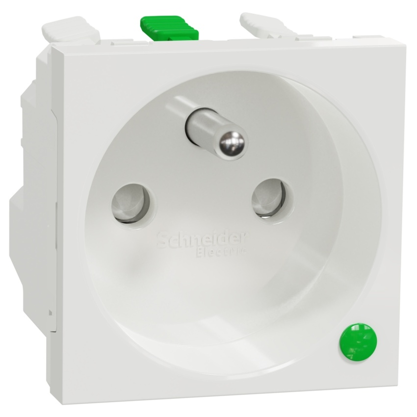 Zásuvka s přepěťovou ochranou 2P+E Schneider Electric Nová Unica NU305918EP, 250V/16A, clonky, bezšroubová,bílá