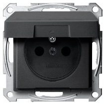 Zásuvka se zemnicím kolíkem a krytkou, s dětskými clonkami. Možnost dovybavení mechanizmu QuickFlex o další moduly, zepředu bez demontáže zásuvky.