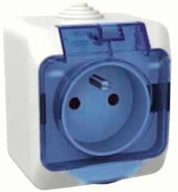 Zásuvka s dětskými clonami. Jednonásobná, čirý kryt.