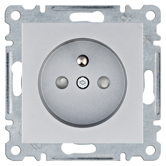 Zásuvka se zemnícím kolíkem a clonkami, stříbrná mat
