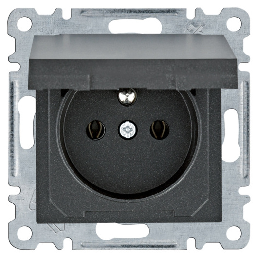 Zásuvka se zemnícím kolíkem a víčkem, IP20, černá mat