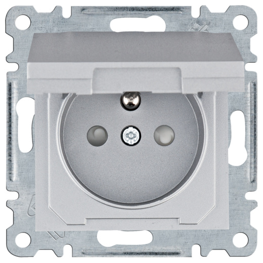Zásuvka se zemnícím kolíkem, s clonkami a víčkem, IP44, stříbrná mat
