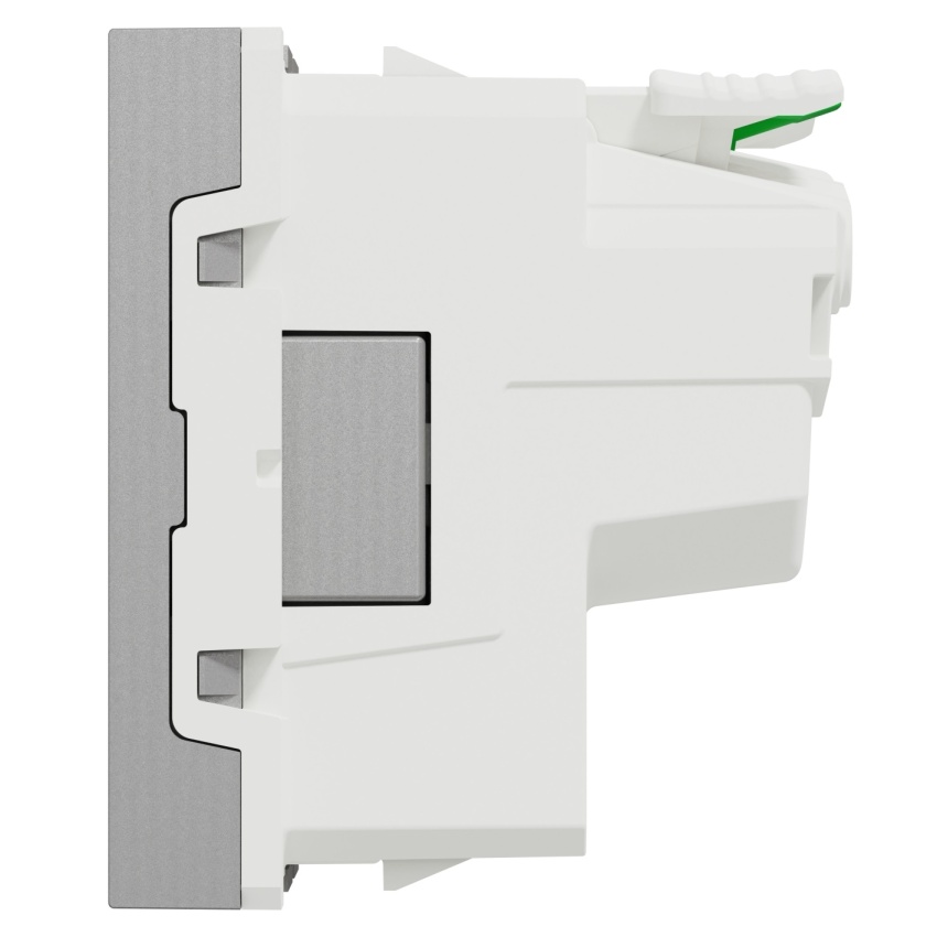 Zásuvka skrytá Schneider Electric Nová Unica NU305230E, 250V/16A 2P+E, clonky, bezšroubová, aluminium