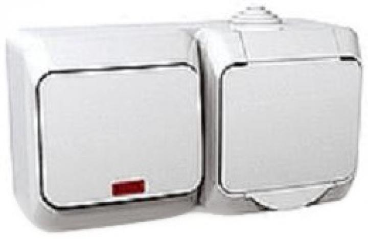 Zásuvka 2P+PE s jednopólovým spínačem s orientační kontrolkou, bílá.