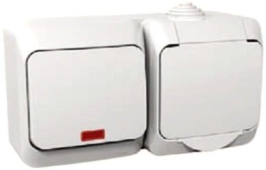 Zásuvka se střídavým přepínačem, s orientační kontrolkou. Nástěnná montáž.