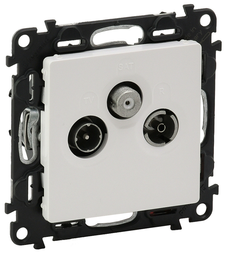 Zakončovací zásuvka TV-RD-SAT, v bílé barvě.