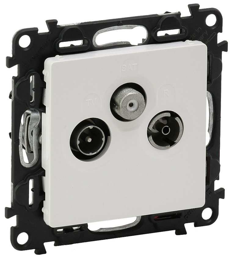 Průběžná zásuvka TV-RD-SAT, v bílé barvě.