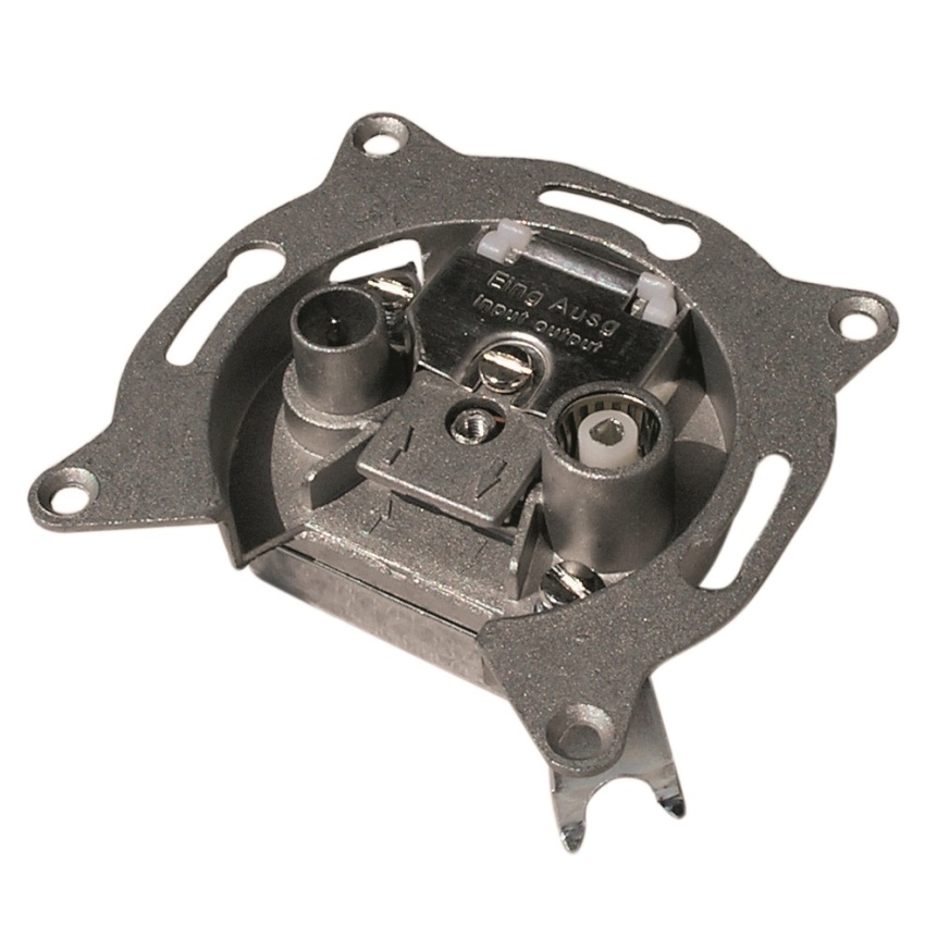 TV účastnická zásuvka EU3601A koncová TV(1dB)+R(2dB), R(88-108,111-125MHz)2 dB, TV(1-4k.,S7-69k.) 1dB, Zpětný kanál(5-30MHz)