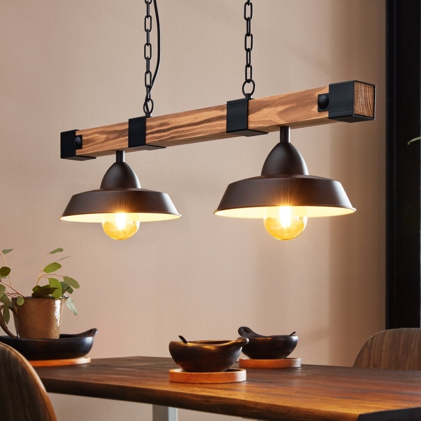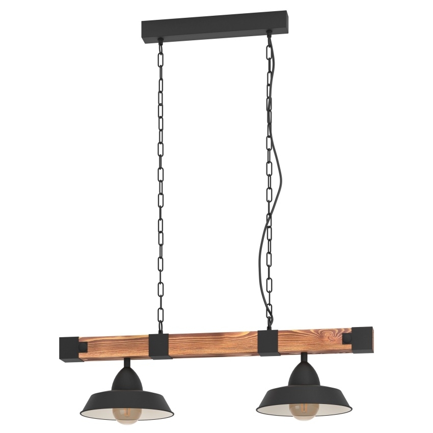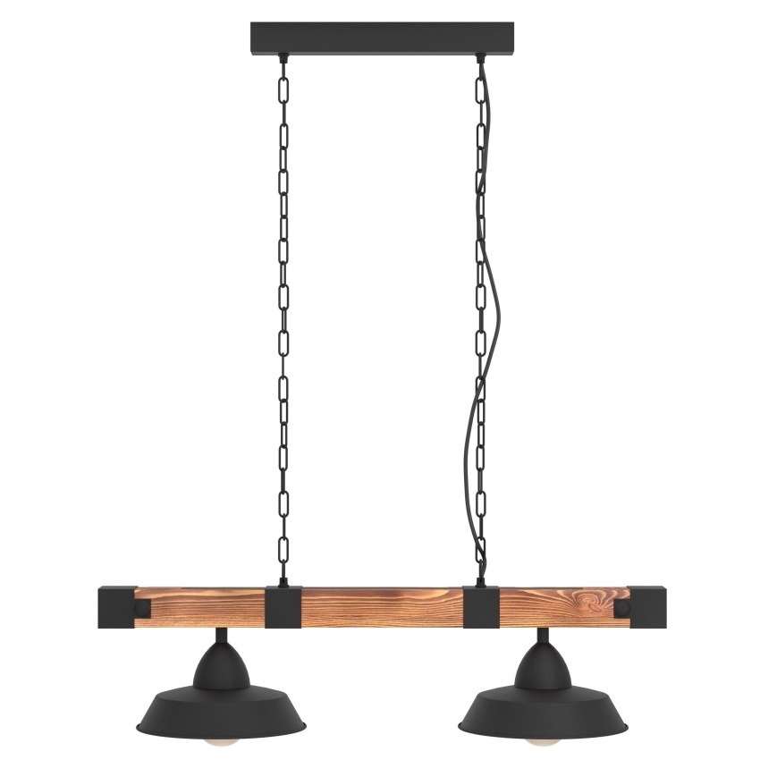 Závěsné svítidlo EGLO OLDBURY 44085 přináší do interiéru stylový vintage vzhled. Kombinace černé oceli a hnědého rustikálního dřeva vytváří atraktivní kontrast, který se skvěle hodí do moderních i klasických prostor. Díky dvěma paticím E27 (zdroje nejsou součástí balení) můžete volit světelné zdroje dle vlastního vkusu, což vám umožní vytvořit optimální světelnou atmosféru. Svítidlo je ideální pro zavěšení nad jídelní stůl, do obývacího pokoje nebo do stylové kuchyně. Disponuje stupněm ochrany IP20 a třída ochrany I zajišťuje bezpečný provoz. Součástí je černý kabel a svítidlo se ovládá externím spínačem.