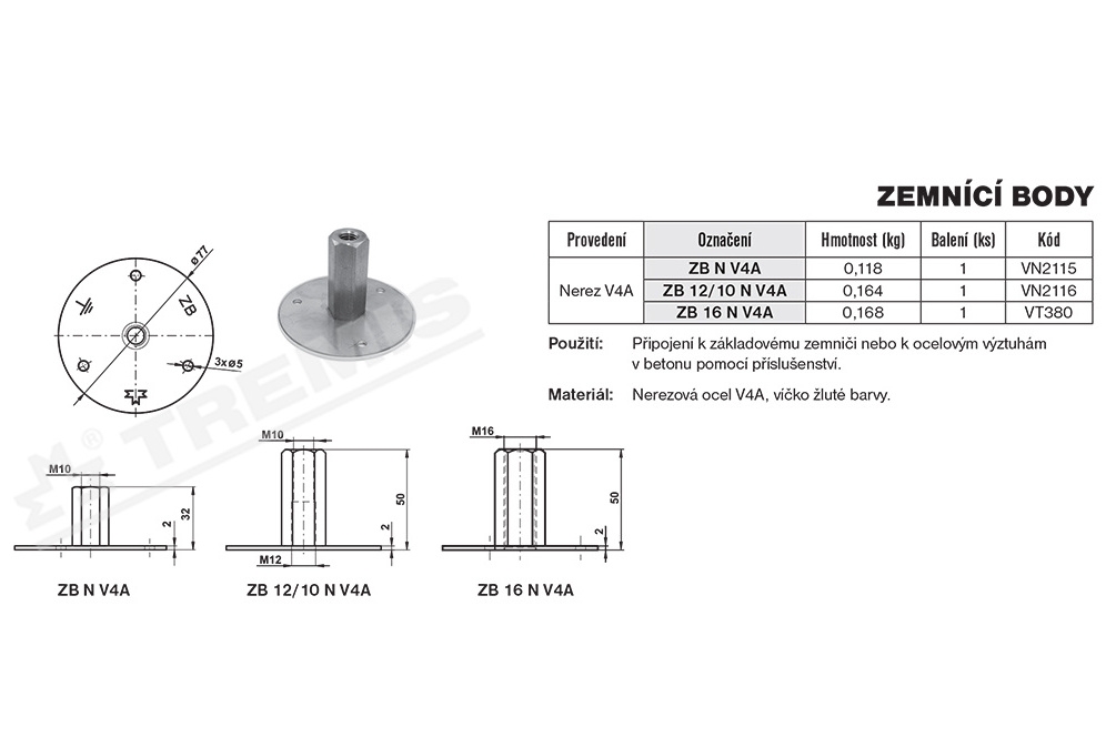 Zemnící bod ZB 12/10 N V4A nerez TREMIS VN2116