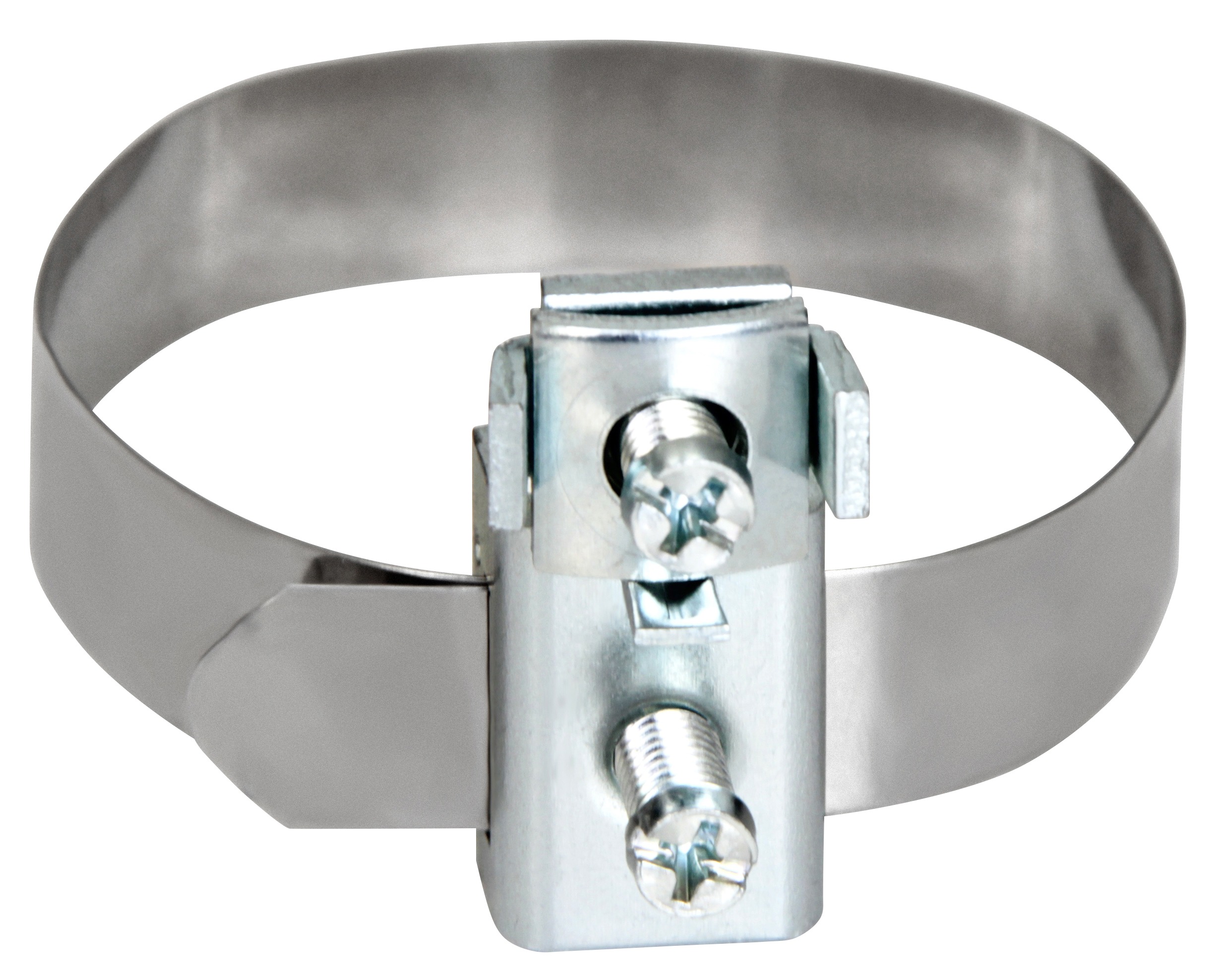 ZEMNICÍ SVORKA ZS 16 VK - Zemnicí svorka určená k doplňkovému pospojení trubek. Svorka má upravenou konstrukci pro rychlejší a snadnější montáž. Součástí svorky je nerezový pásek dlouhý 250 mm.