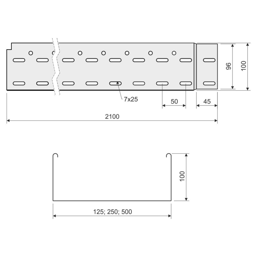 - Kabelový žlab Mars s integrovanou spojkou NKZI 100x125 z plechu tloušťky 0,70mm v povrchové úpravě sendzimir, děrovaný, opatřený embosy pro zvýšení pevnosti a tuhosti.