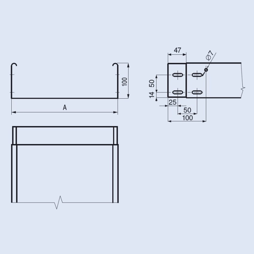 Žlab AKZS je opatřen perforací pouze pro spojení žlabů a pro uchycení PUV. Je určen pro snadnou a rychlou montáž bez použití spojky (konec žlabu je upraven pro propojení žlabů – integrovaná spojka).