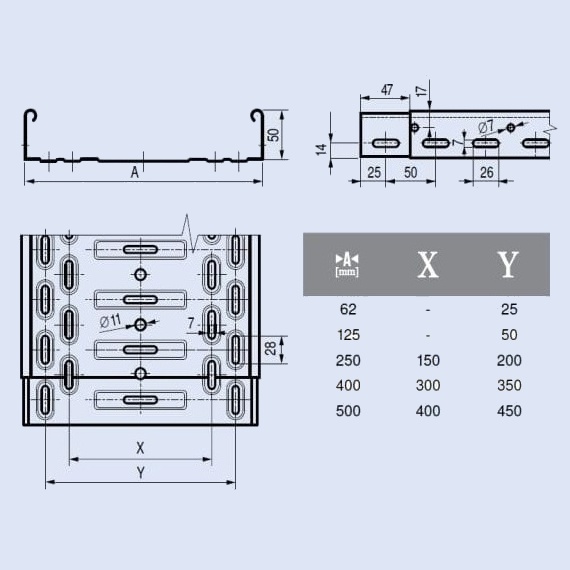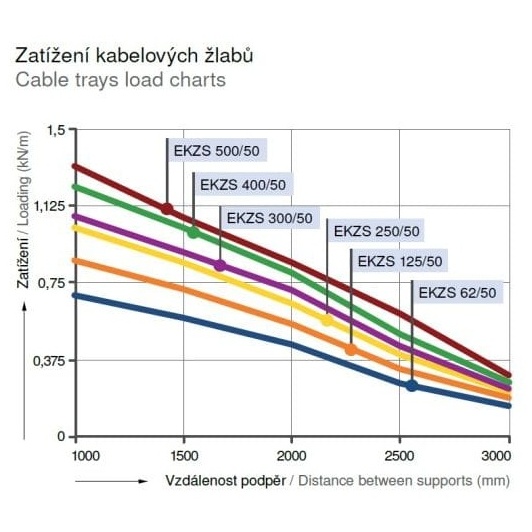 Žlaby EKZS jsou perforovány v celé své délce, perforace je opatřena embosováním, které zvyšuje celkovou pevnost a nosnost NKS. Hustota perforace také zjednodušuje montáž, odpadá příprava děr pro uchycení k nosníkům a pro vyvedení kabelů ze žlabu.