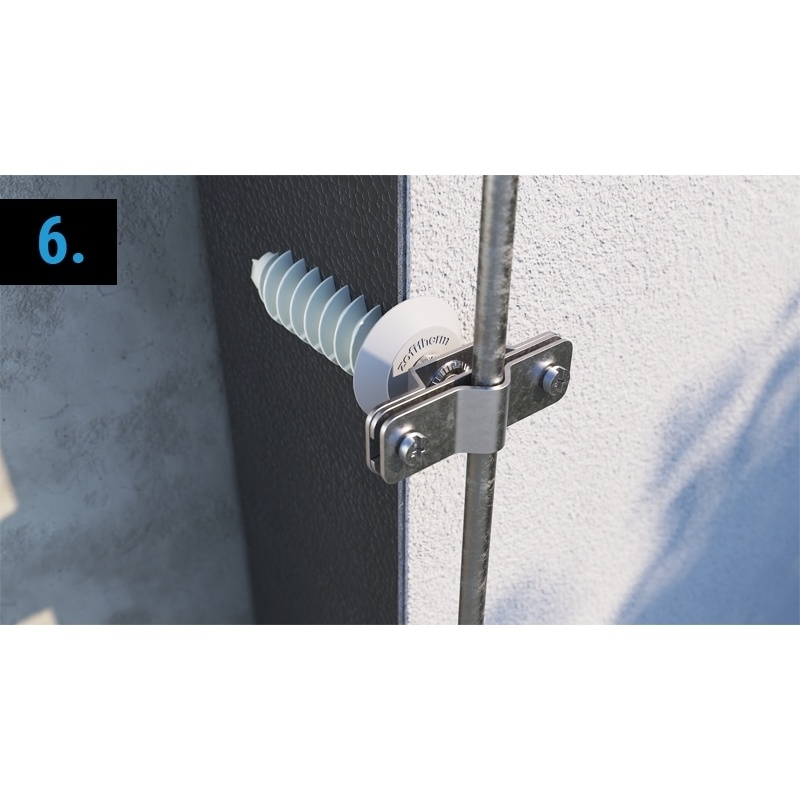 ZOFITHERM HP-PRO je profesionální držák hromosvodu navržený pro pevné uchycení vodiče o průměru 8 nebo 10 mm do zateplených fasádních systémů. Oproti standardnímu modelu je vybaven robustní nerezovou úchytkou, která zajišťuje extrémně pevné spojení bez vůle – ideální i pro exponovaná místa. Drát se fixuje pomocí dvou nerezových šroubků. Systém zachovává plnou funkčnost zateplovacího systému a zároveň poskytuje estetický a dlouhodobě odolný způsob uchycení. Montáž je rychlá, bez nutnosti speciálního nářadí, a podporuje všechny běžné izolační materiály.